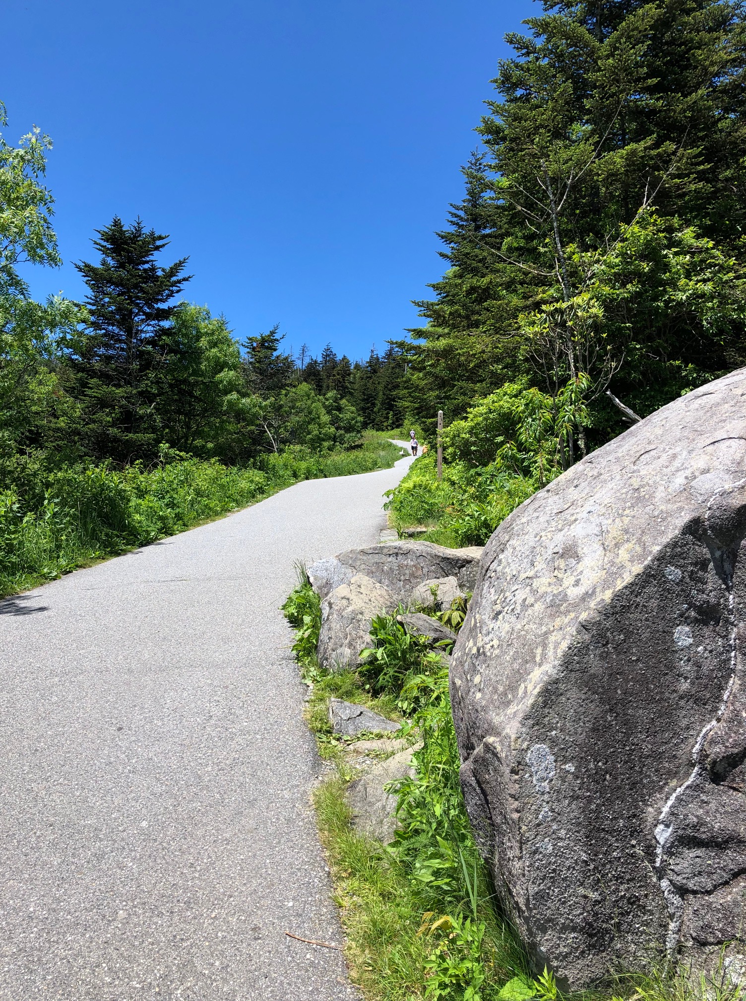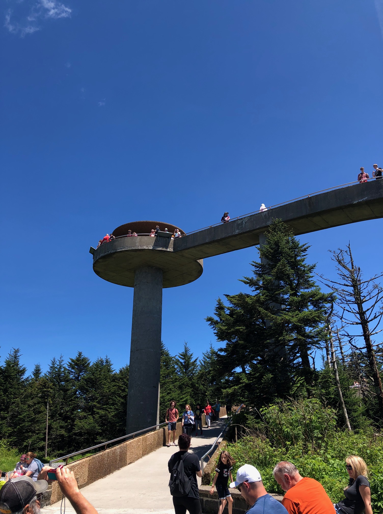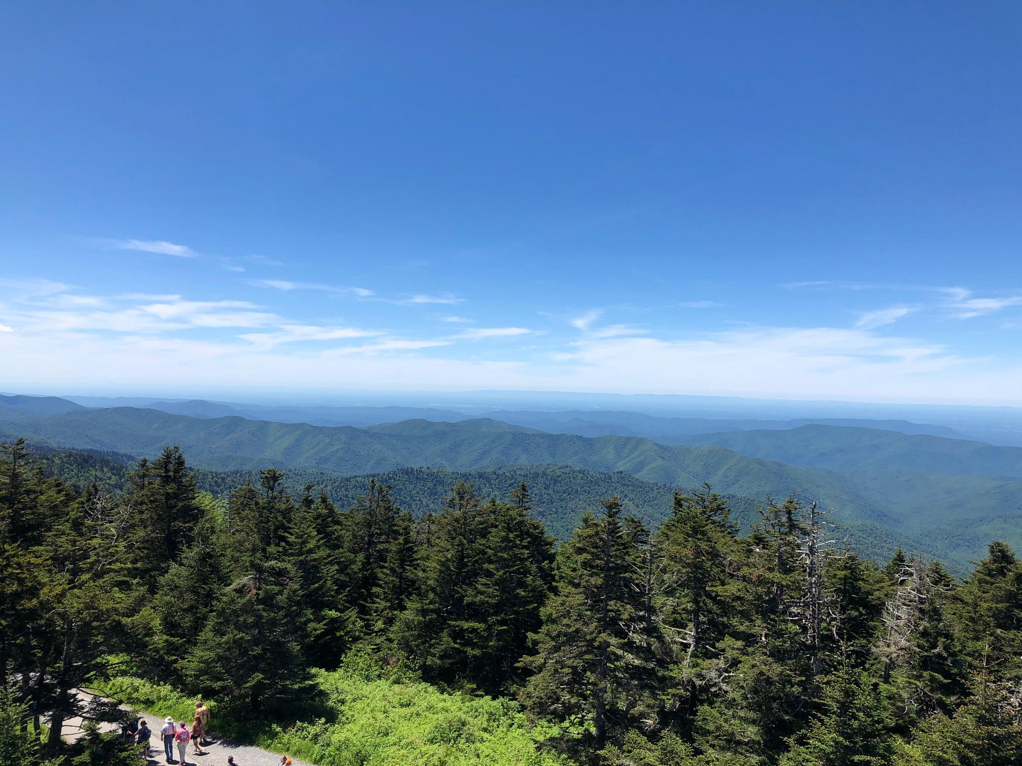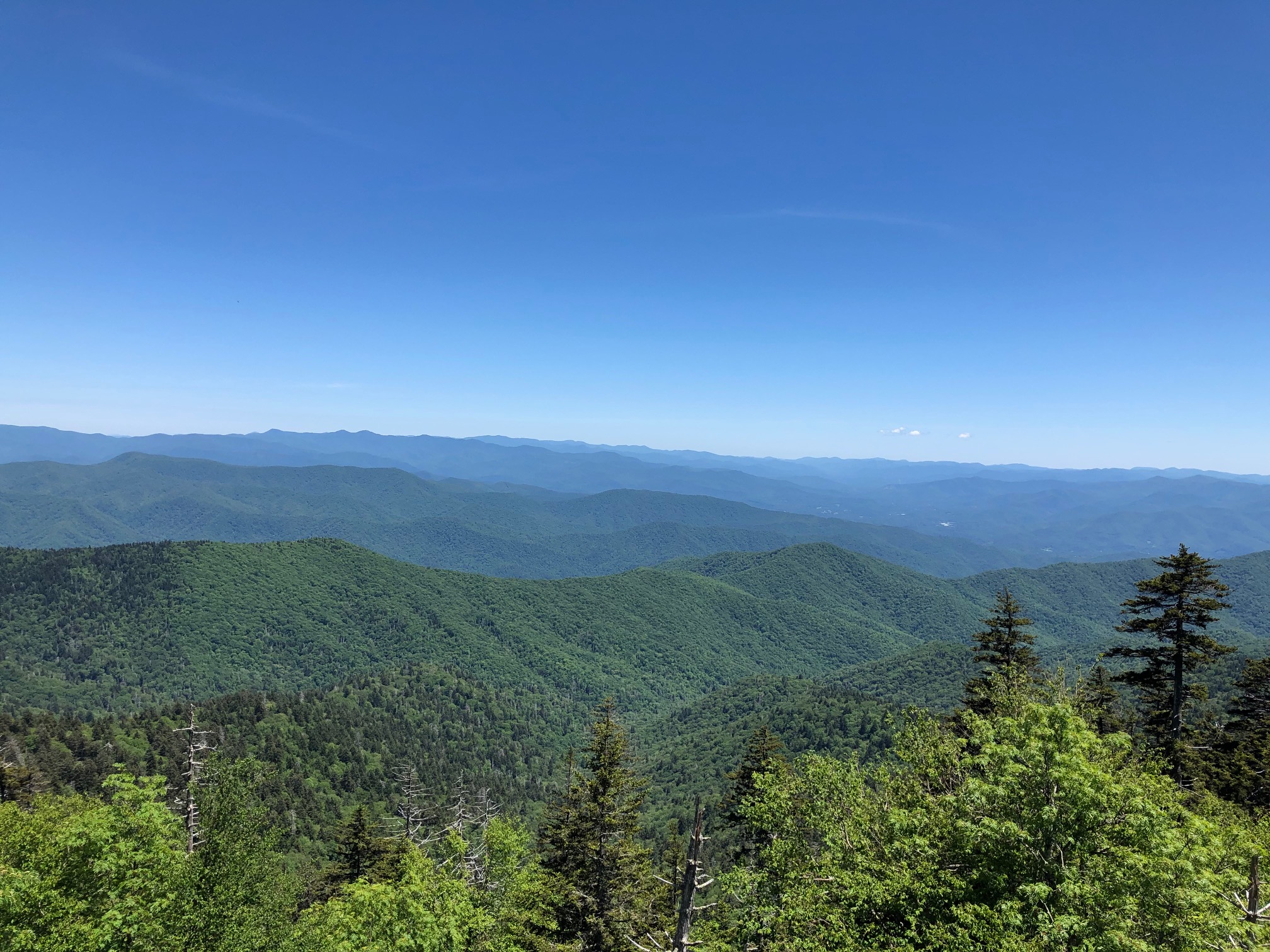 The trip from Louisville took a little more than four hours for us to get down there. We stopped at a place in Pigeon Forge for lunch (just some good old fried chicken) and then headed into the park. As it was a beautiful day without a cloud in a the sky, we went straight to Clingmans Dome which, at 6,643 feet, is the highest mountain in the park. The drive on the way up was gorgeous despite seeing some of what the fire from a few years ago had done to parts of the forest. There is a large parking lot near the top of the mountain, but it was packed since the dome is a popular stop, so we had to park back down the road a ways. If you do end up going to see the dome it may be best to go early in the morning or late afternoon to avoid the crowds. It only took us a few minutes to walk back up to the parking lot but getting to see the view from there was worth the extra effort.