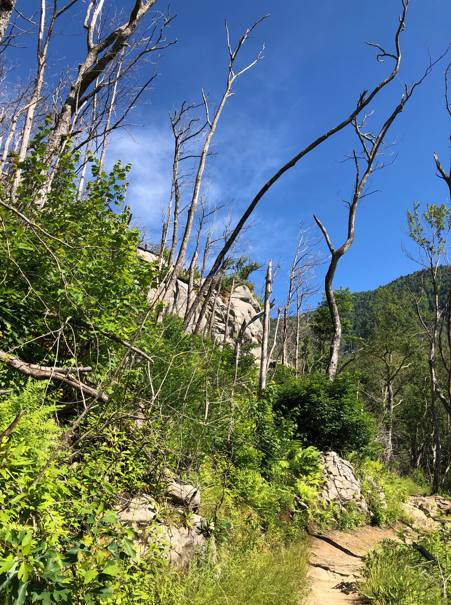 Along the trail we saw a few trees that were burned out. Whether it was from lightning or the fire from a few years ago we did not know. There were some giant rocks too (if you’re into that sort of thing).