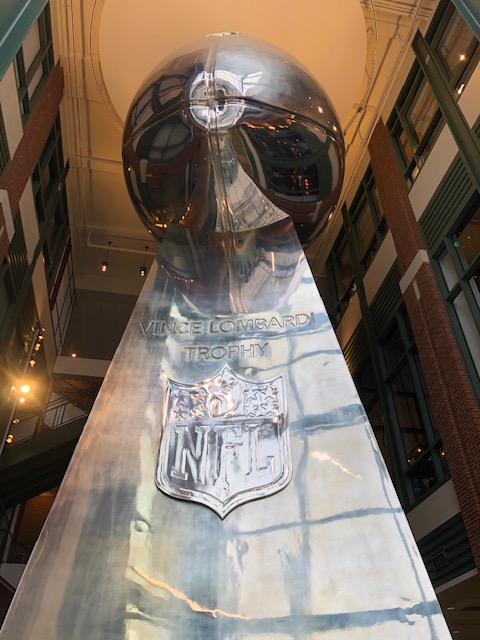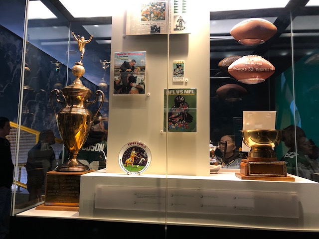 I think the trophy on the left was one of the trophies the Packers were given for winning the first or the second Super Bowl.
