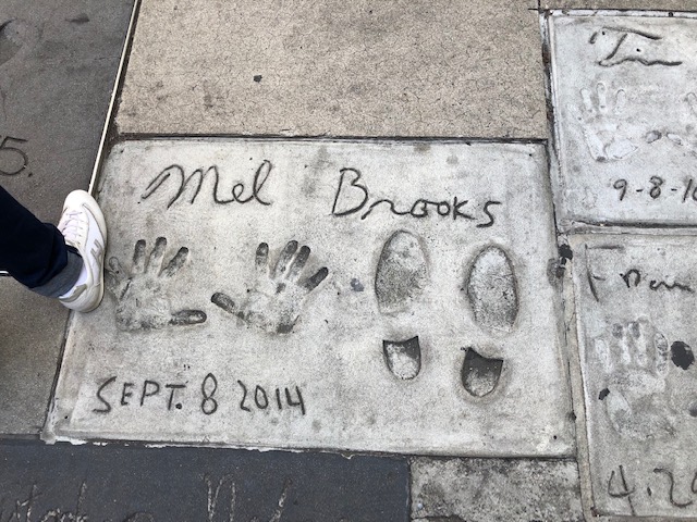And, being, the nerd that I am, I snapped a quick pic of the imprints from two certain individuals. It might be difficult to tell, but Mel Brooks’ left hand has six fingers. Of course, in reality, he didn’t, he just thought he would play yet another joke on people.
