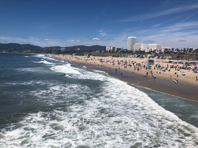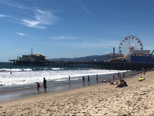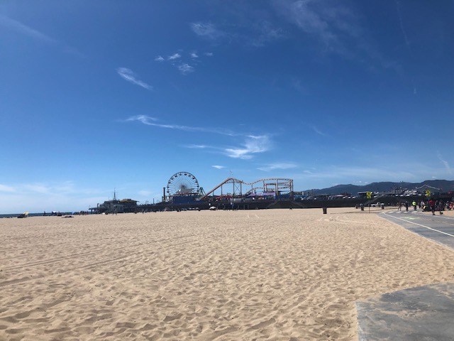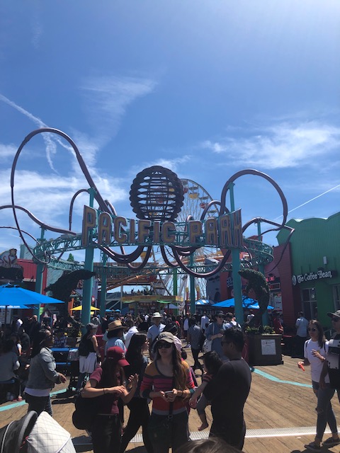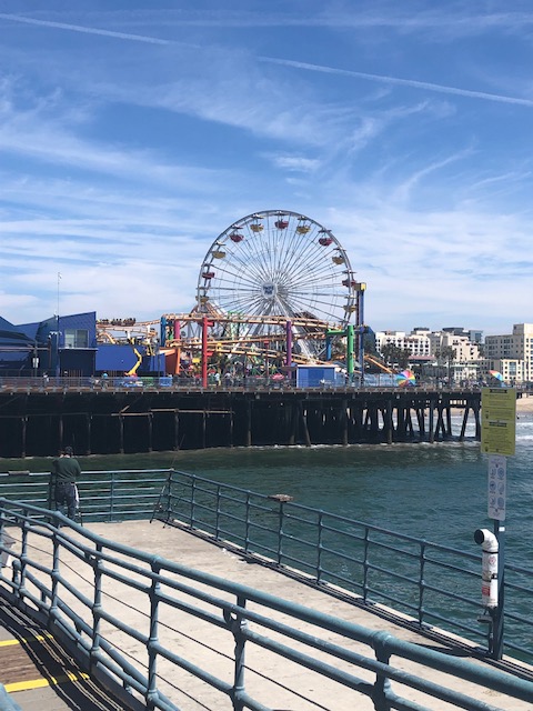 Yep, we were at the Santa Monica pier! Unfortunately, we did not make any time to play at the Pacific Park, but we did get to eat lunch and wander the pier. The views of the Pacific Ocean were amazing.
