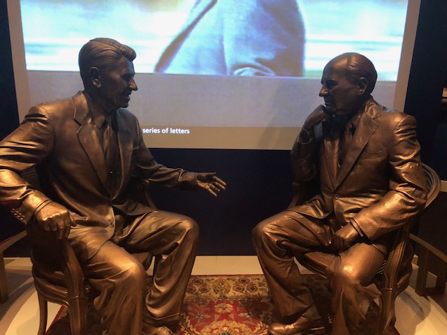 We did get to see some of the museum after the plane tour though. Mostly it dealt with some of what happened during his terms as president like this statue of him and Soviet leader Mikhail Gorbachev.