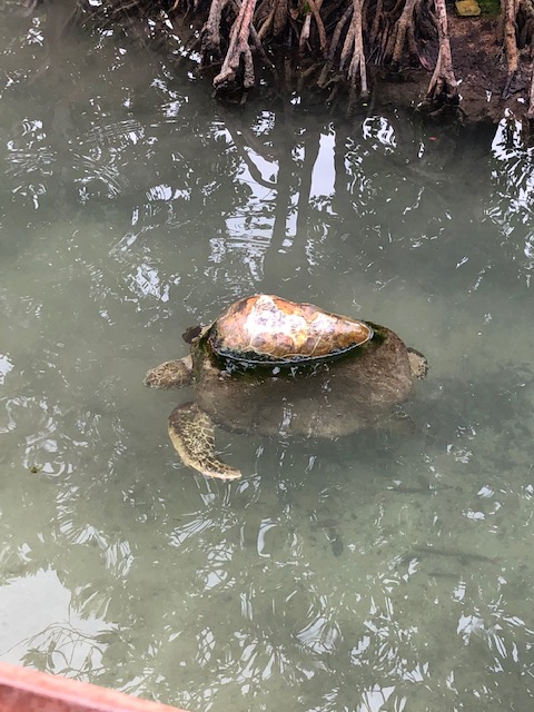And this poor turtle who was hit by a boat.