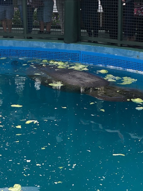 And a few manatees floating lazily about in their tank while eating some lettuce or cabbage.