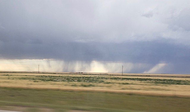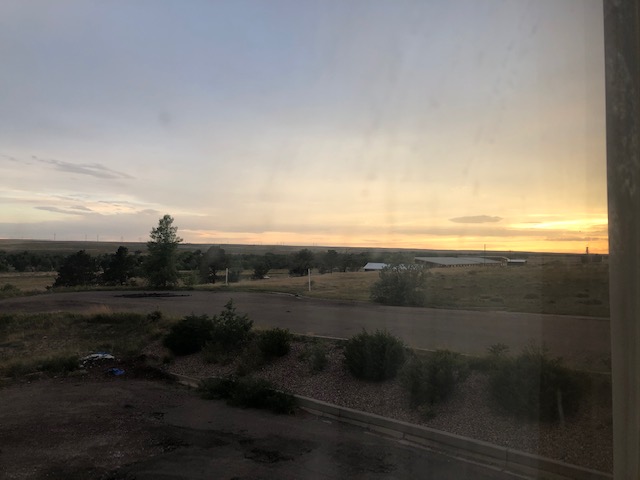As soon as we crossed into Colorado the roads turned terrible. We stopped for food at a Burger King in Burlington, Colorado, a tiny town attempting to be a tourist destination for Western enthusiasts. Upon exiting the car we were greeted with the smell of cow poo. The inside of the Burger King had many flies too. It wasn’t the best experience. We stopped at a hotel in Limon, Colorado for the night after driving almost 800 miles that day. Here is a view from our hotel room.