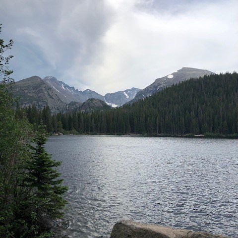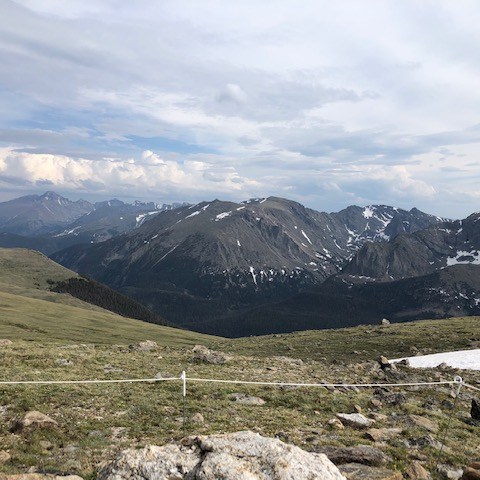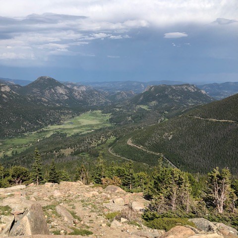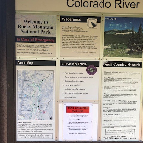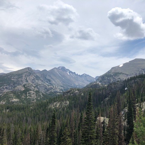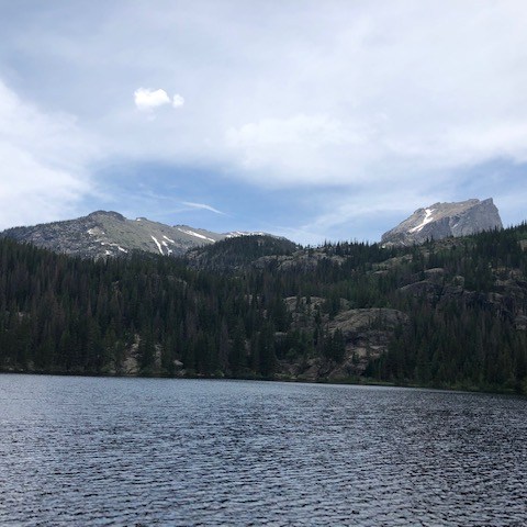 The way back to the parking lot wasn’t too bad other than us getting rained on a little bit. From there we mostly rode up Highway 34 through the rest of the park. The Rockies were amazing to see along the way. We did a few short trails at or near the tops of mountains. It was quite windy up there and the trails tired us out some more.