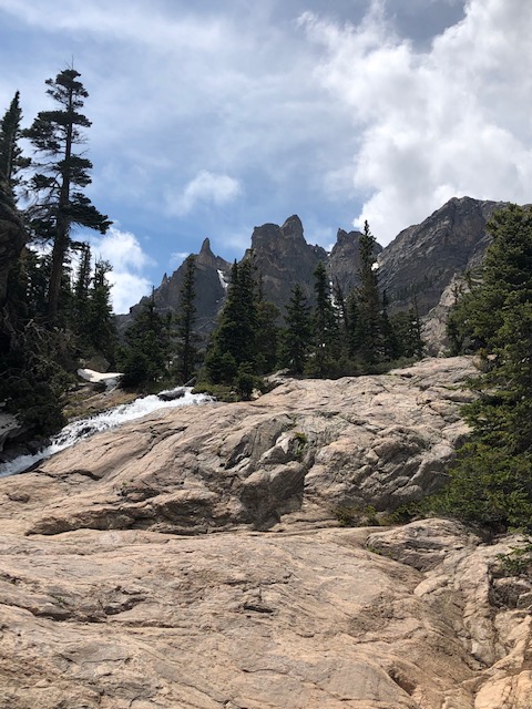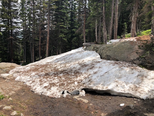 The next lake was called Dream Lake. Along the way we encountered some snow for the first time.