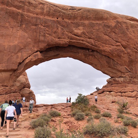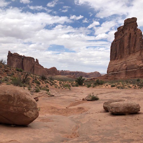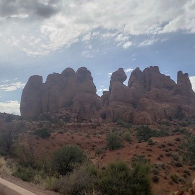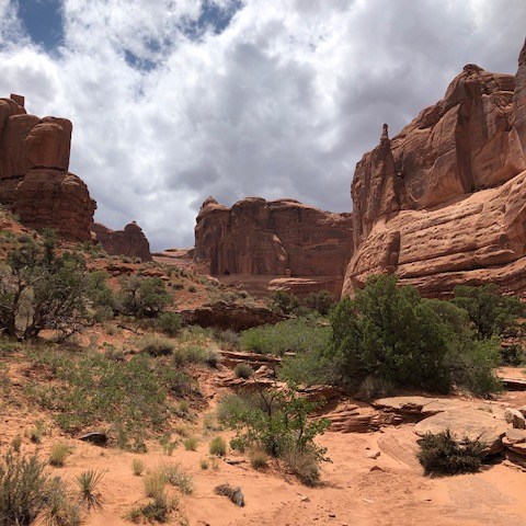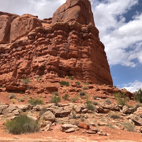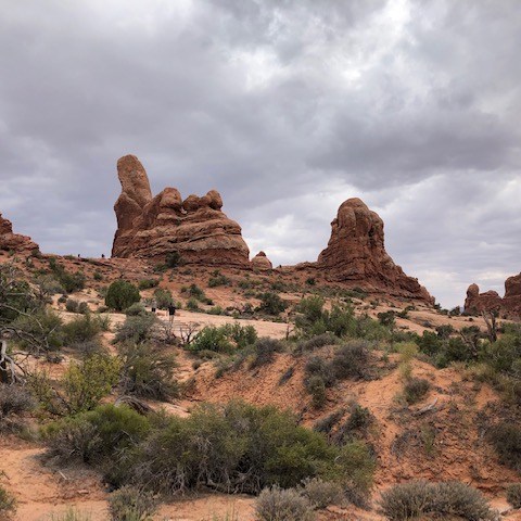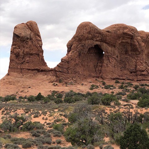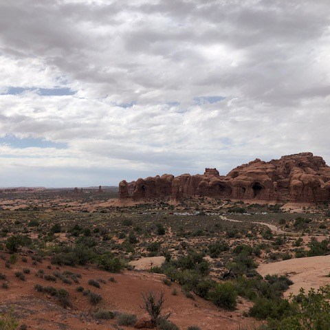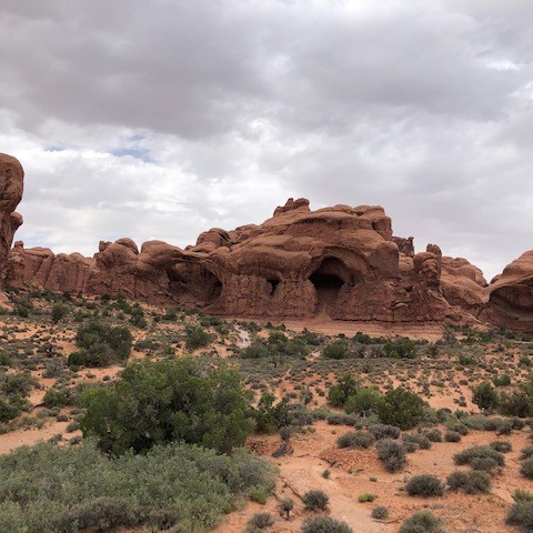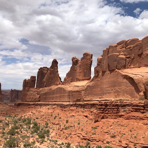 Arches National Park was more than worth the effort to get to. All the sandstone formations were both pretty and mind-boggling. We hiked many of the smaller trails that led to arches and other formations. We skipped a few things near the end that we will have to go back again for. And we still spent about five hours in the park! Also, I recently found out that the beginning of the movie Indiana Jones and the Last Crusade features a lot of Arches National Park. Watch the movie and you will some familiar sites in the below pictures. Here are some of the highlights from the park.