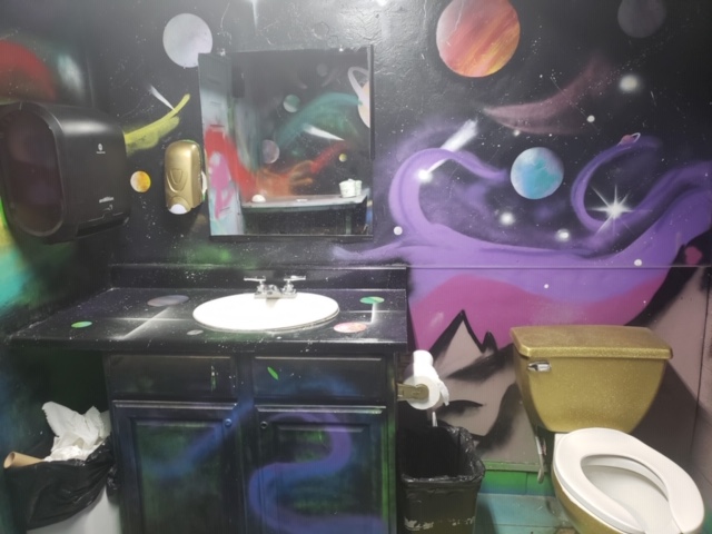 After the park we went into Moab and found a place to stay for the night. It was a nice little motel not far from the main strip. After wandering around the city for a little bit we settled on getting food at a place called Zax. They had really good pizza and there was so much of it that we had leftovers. Here is our view from the second floor dining area.