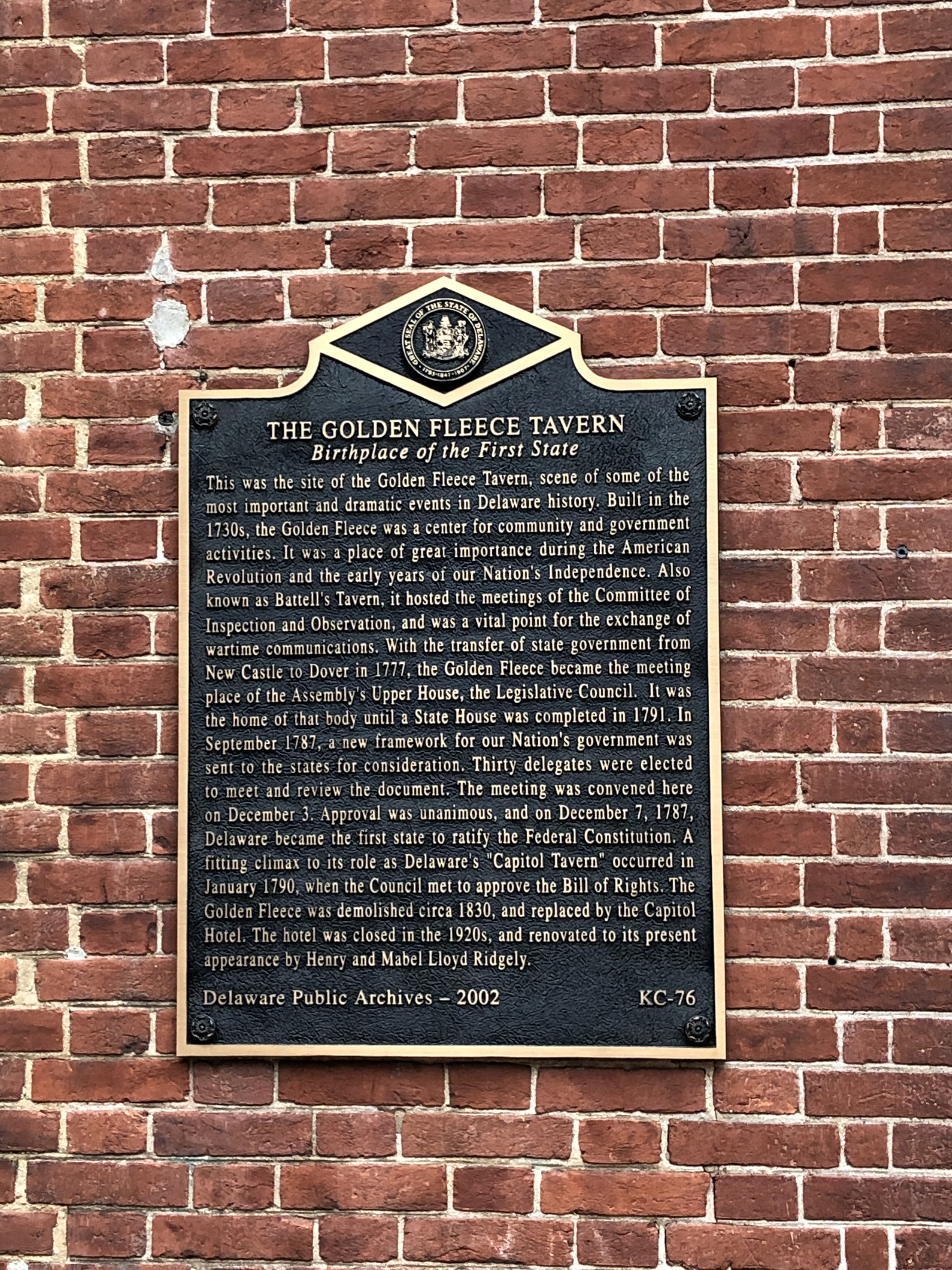 The tour was mostly around The Green but we did learn a lot about Dover during the time that the United States Constitution was ratified. One example was that the biggest reason Delaware became the first state was because of its proximity to Philadelphia which was where delegates from all of the states were meeting to write the U.S. Constitution. The delegates from Delaware were able to take the news back to Dover quicker than anyone else and get the approval to ratify the Constitution.