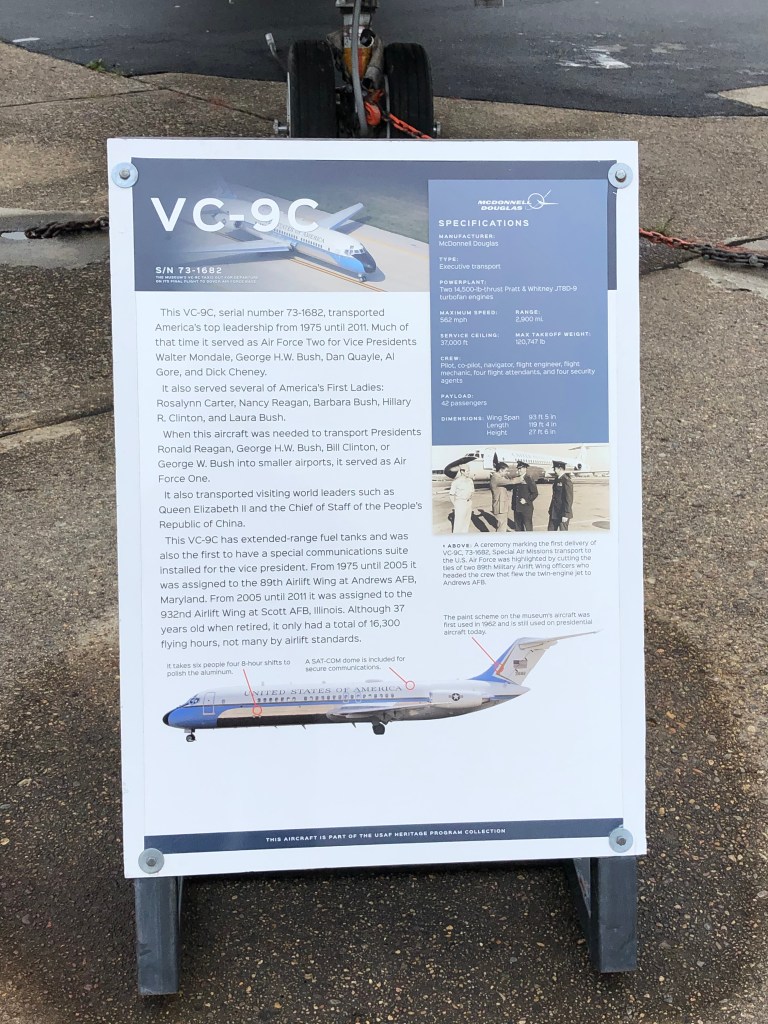 A short drive from there is the Dover Air Force Base which has a museum called the Air Mobility Command Museum. There are a lot of large aircraft outside (that’s all we were able to see since the indoor facility was closed due to, guess what, covid). Dover Air Base has been the base for many cargo aircraft throughout its existence and many of those were on display.