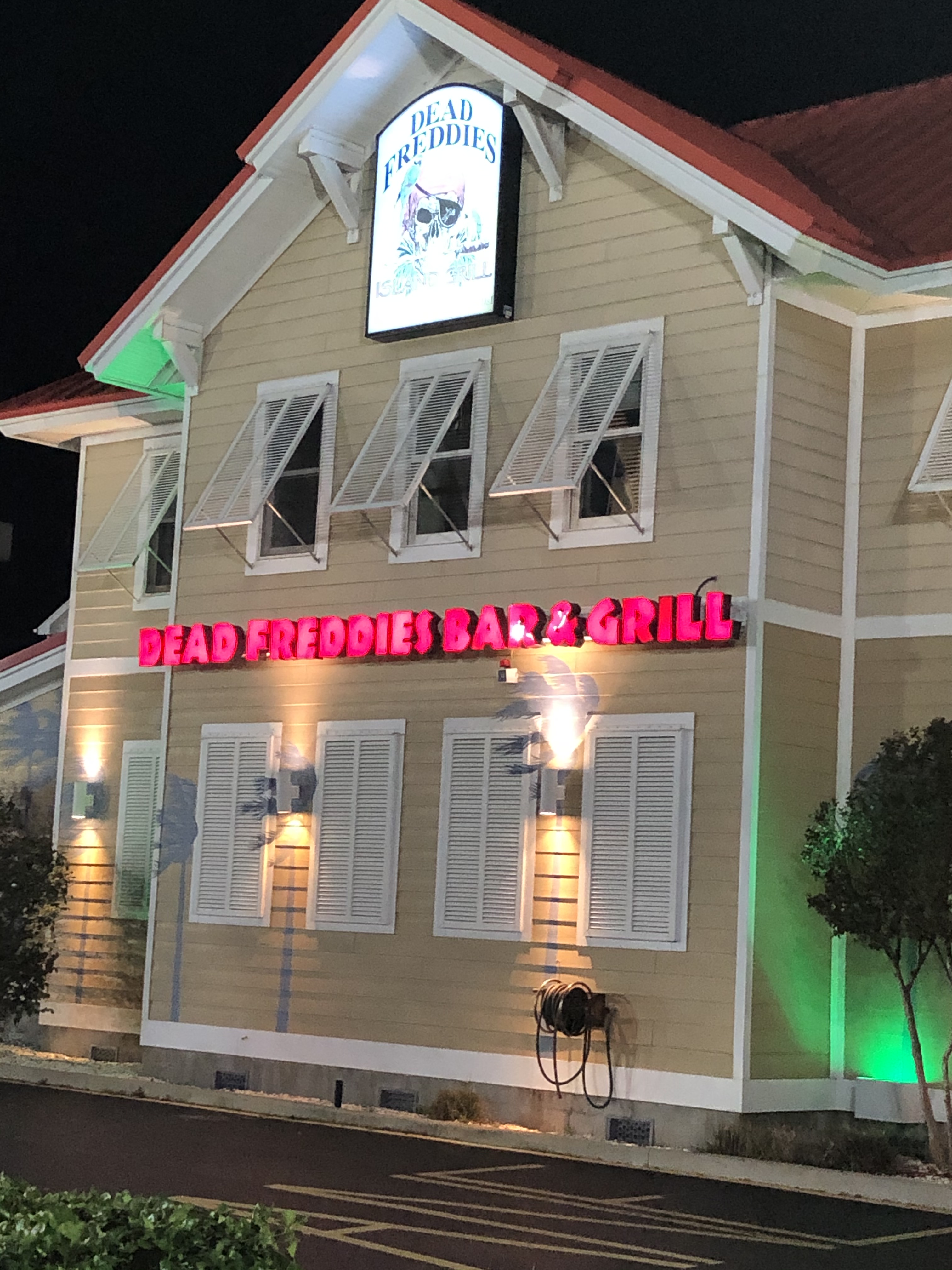 After checking into the hotel we found food at a pirate themed place called Dead Freddies. The food was pretty good and they gave you huge glasses for your drink too.