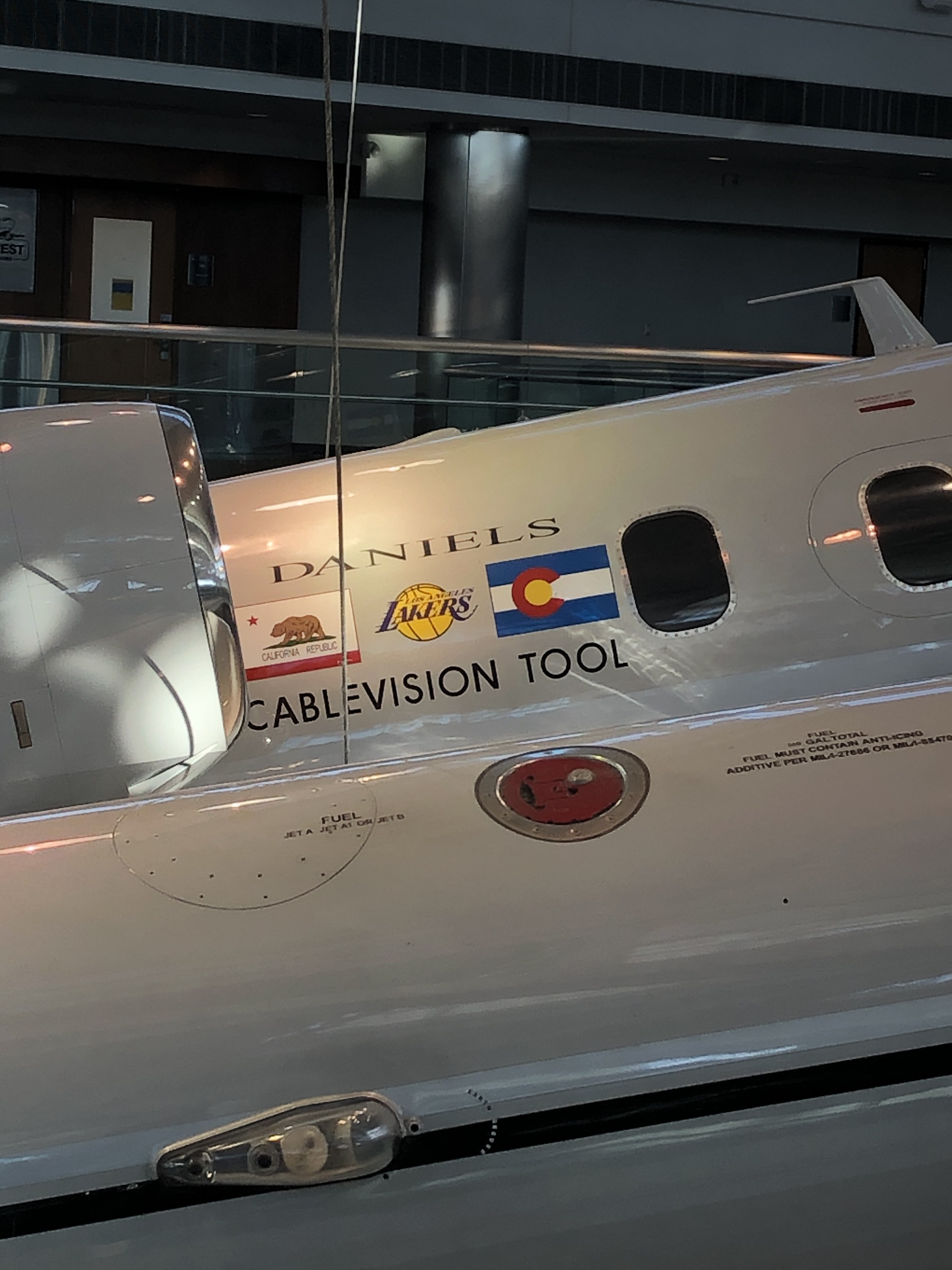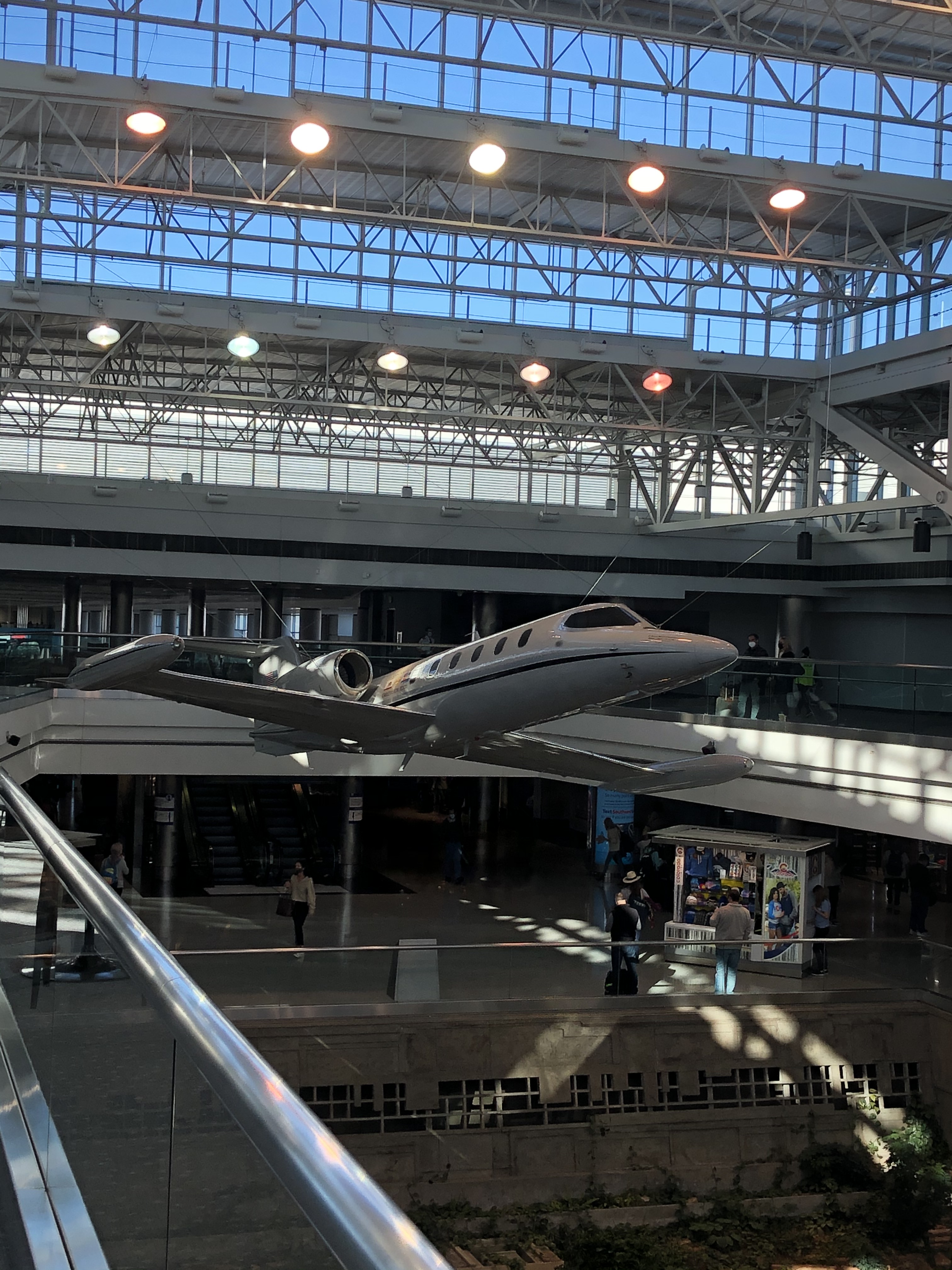 That is Denver’s Airport above. The inside of the airport is quite nice with lots of food and shopping options. We settled for breakfast from an Italian place. Andrea had a slice of cheese pizza and I had a breakfast Stromboli that had bacon, sausage, egg, peppers, mozzarella, and mushrooms. I know, we’re odd balls eating that sort of thing for breakfast. After that we had to quickly make it to our gate for the flight to Las Vegas.