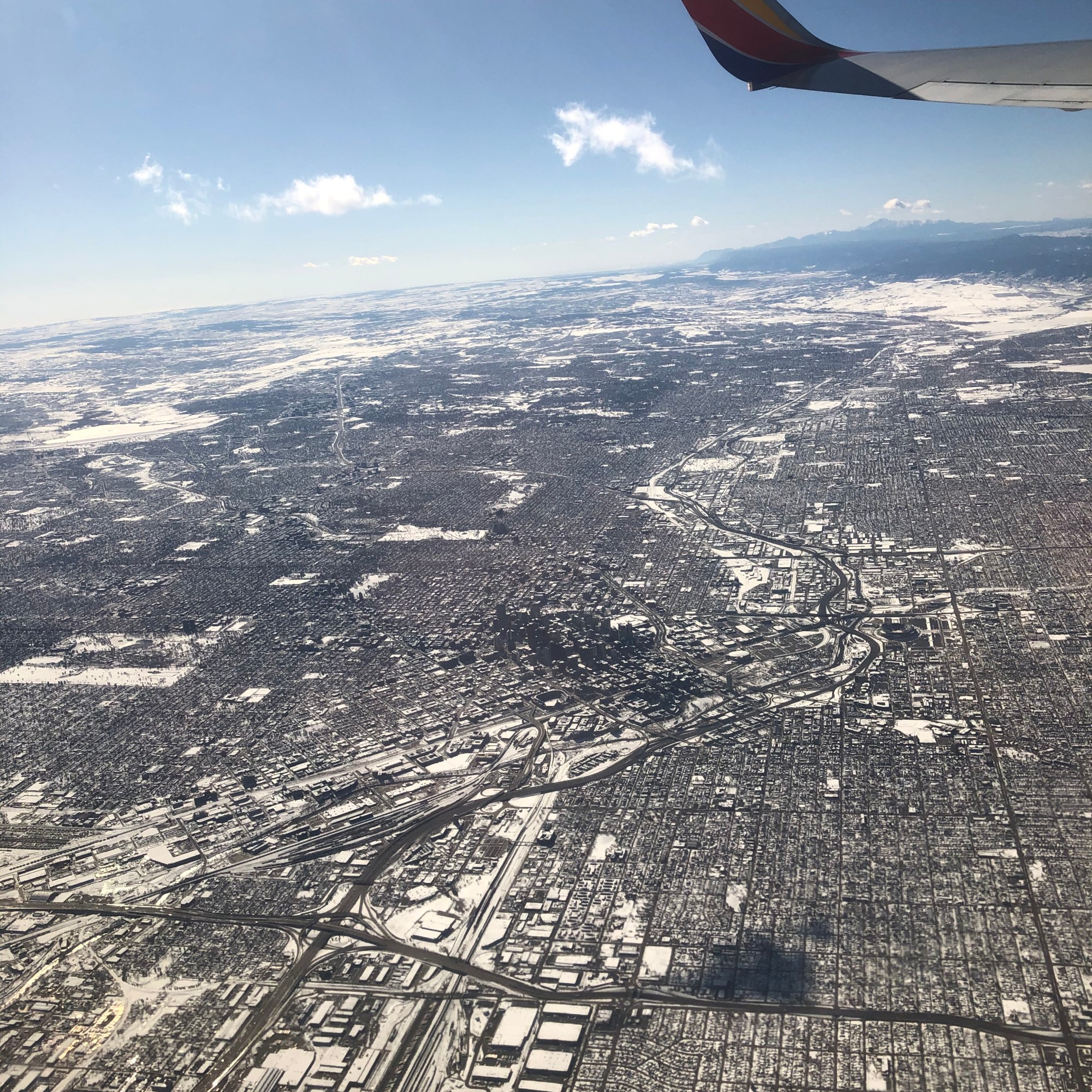 On the morning of Friday, February 26, 2021, we woke up really early to catch our flight to Las Vegas. After arriving at the airport here in Louisville, Kentucky we like to walk around the terminals for a bit until our flight gets ready to leave. We flew Southwest and had to go to Denver, Colorado first. The flight was a bit bumpy for a short time but not too bad. Somewhere over Coloado we started to see some snow.