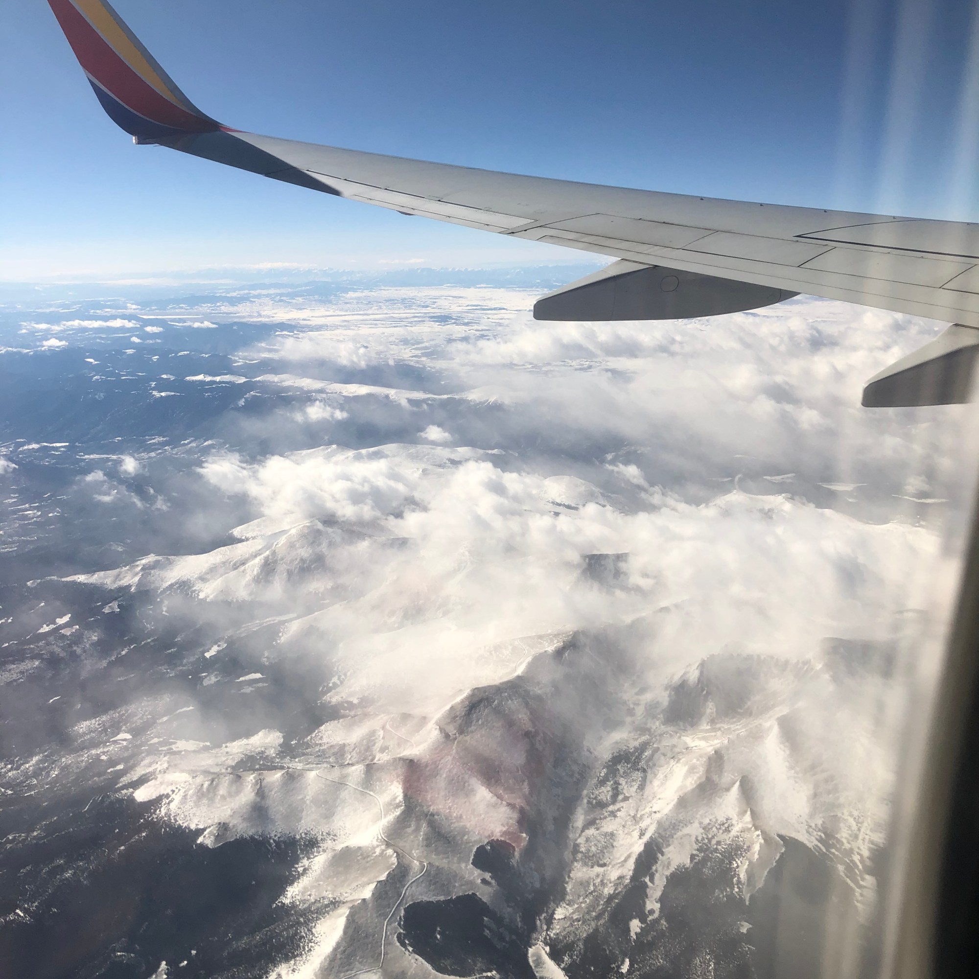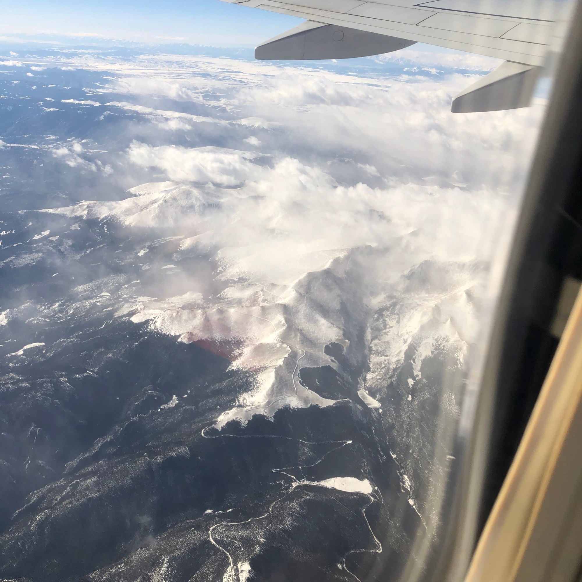 This flight was extremely choppy at first. The turbulence was the worst I have experienced so far and started almost as soon as we rose above the Rocky Mountains. But the view was amazing. The Rockies were great to see from above.