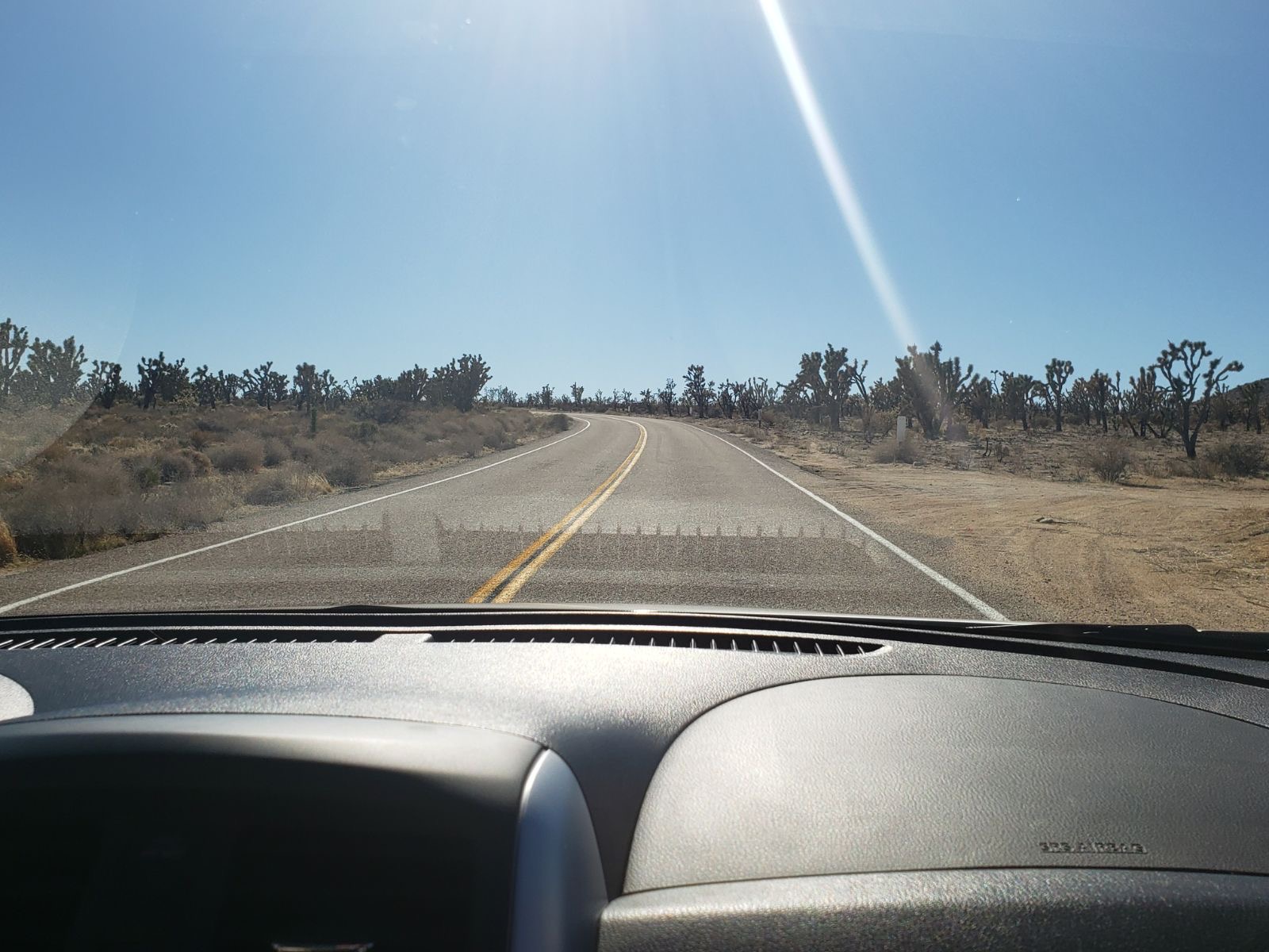 The drive towards Joshua Tree National Park in California was quite scenic too. I’m fairly certain that we never went without seeing mountains to either side of us for the entire trip. At the California/Nevada border there were some casino/hotels, one of which had a roller coaster going all the way around it. There were also some of the huge solar farms where the light is captured at a water tower in the center and the steam produced from the heat creates the power. We saw these as we were about to land at the Las Vegas airport and had no idea what the blinding lights could have been. It was nice to have settled that mystery.