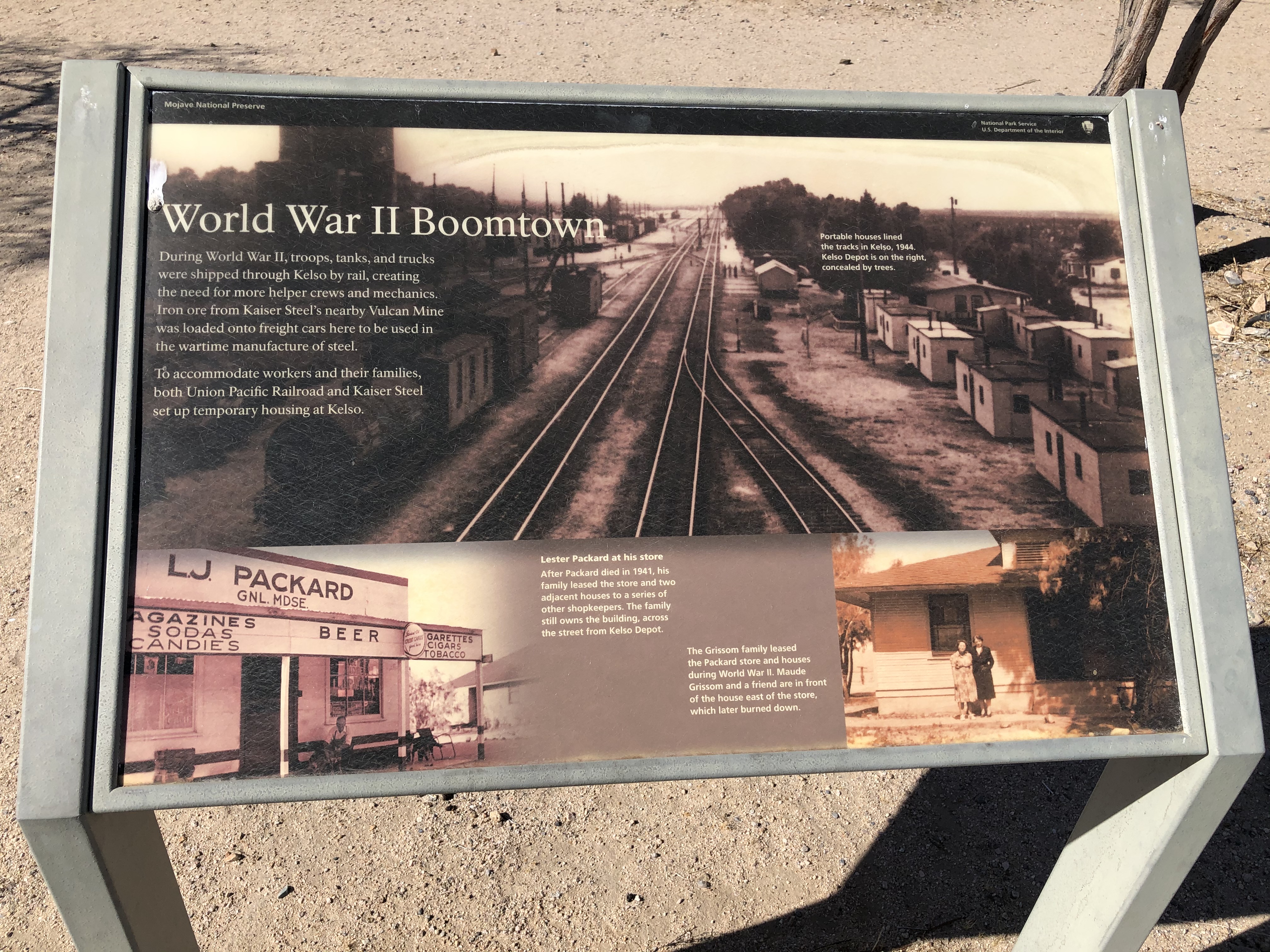 We then came across one of the visitor centers for the Mojave National Preserve in Kelso. It was closed, of course, but there were still some interesting displays that told about the town. During World War II the government leased a lot of the land and buildings as the area had an important local rail station.