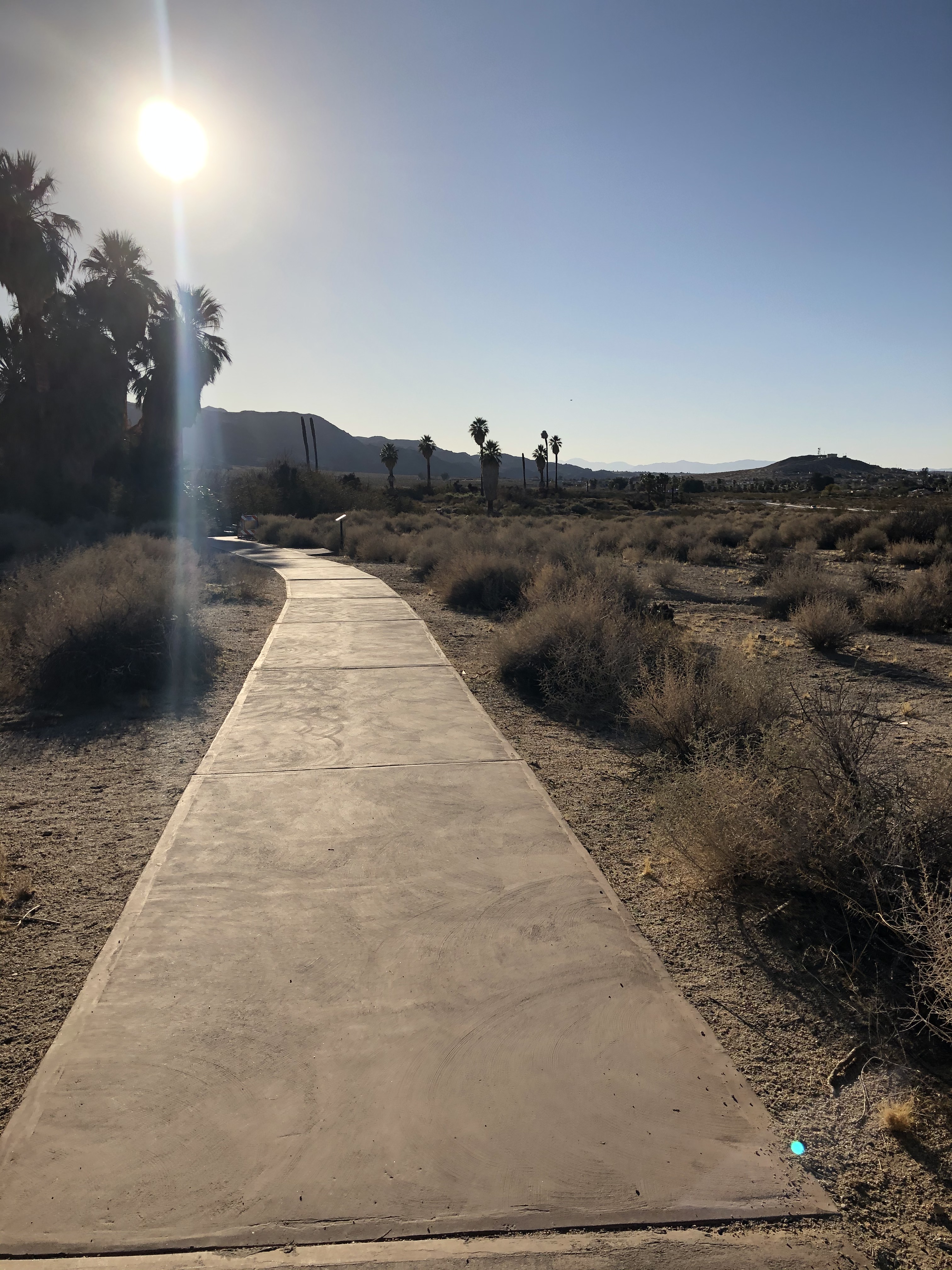 After many more miles we finally reached Joshua Tree National Park. We stopped at the Oasis Visitor Center on the north side of the park. There used to be an actual oasis at this visitor center but it has dried up. There are still a lot of the palms and other foliage around the area along with a short paved trail.