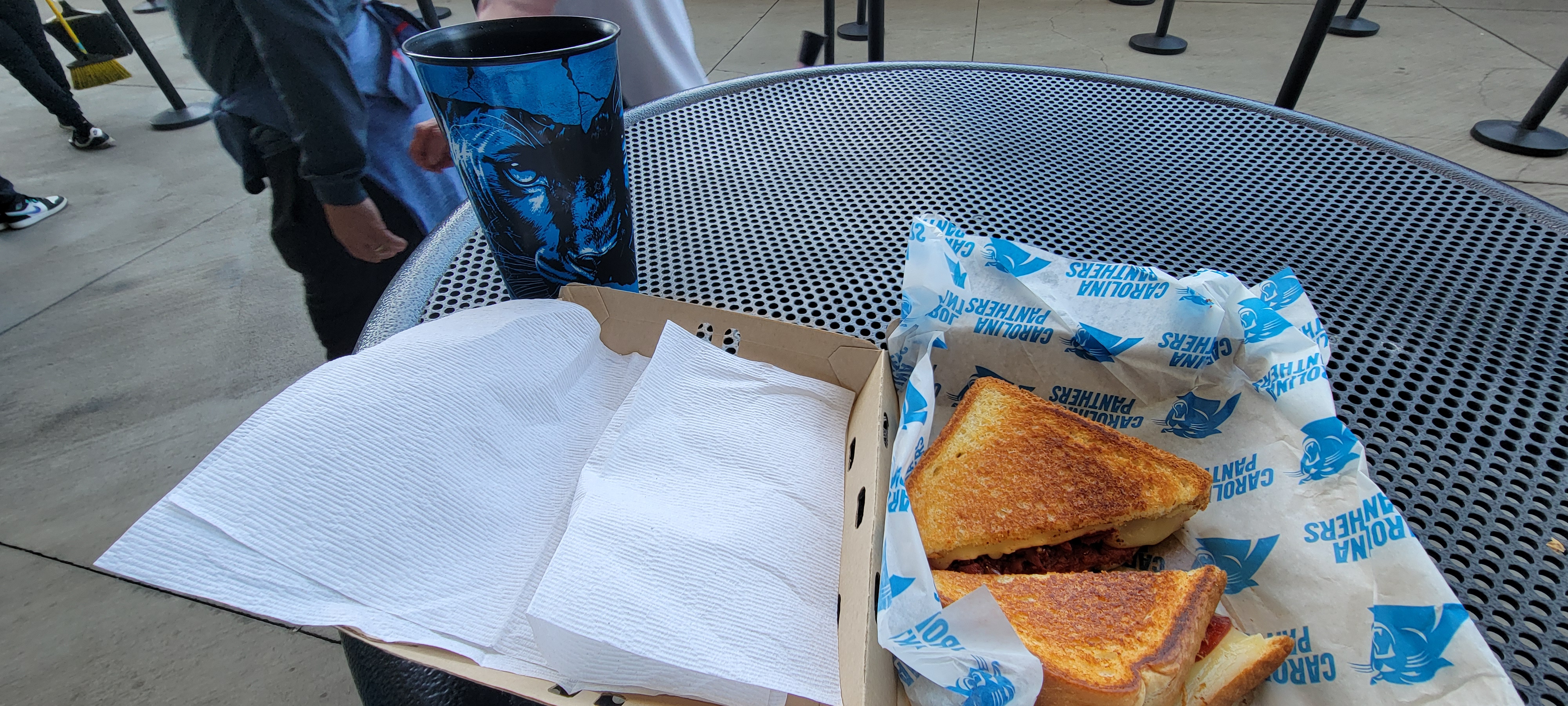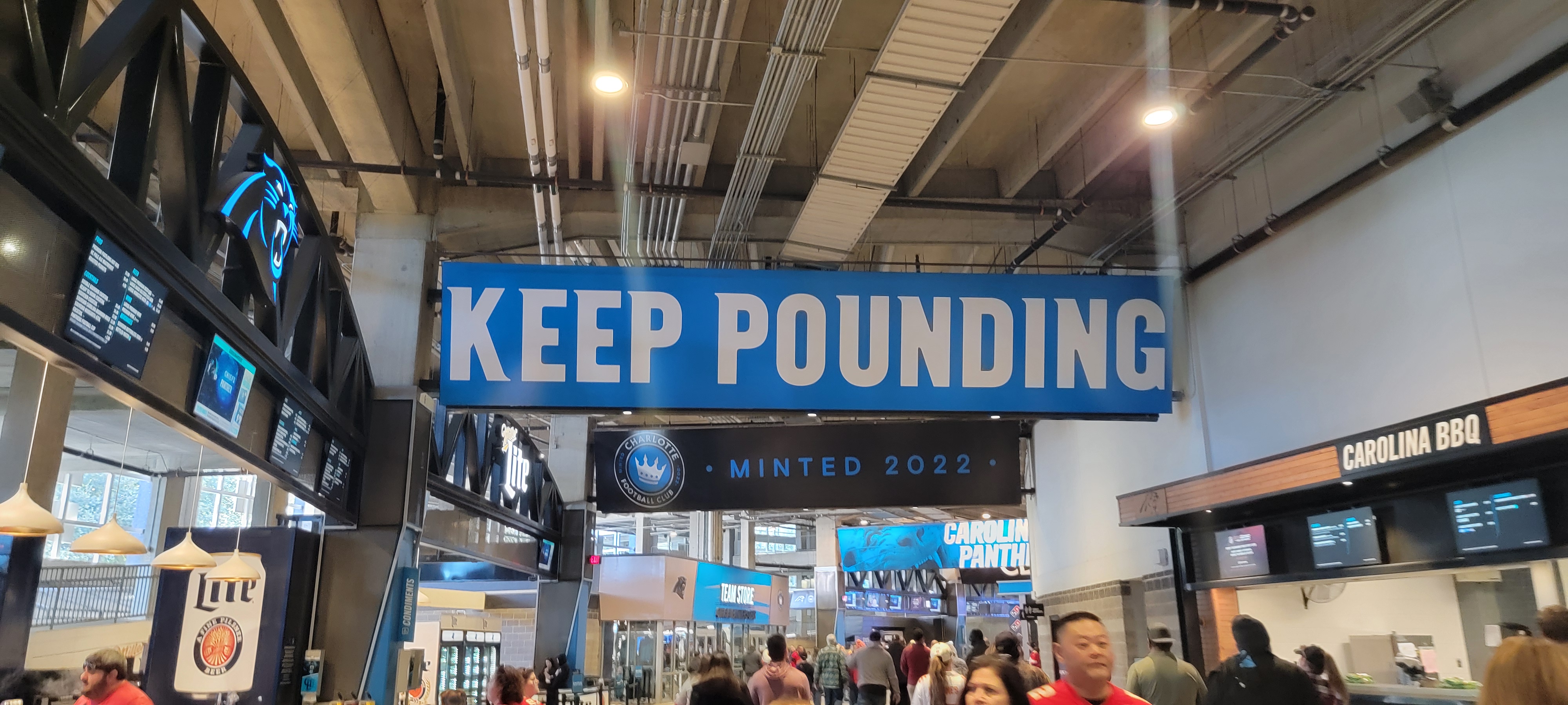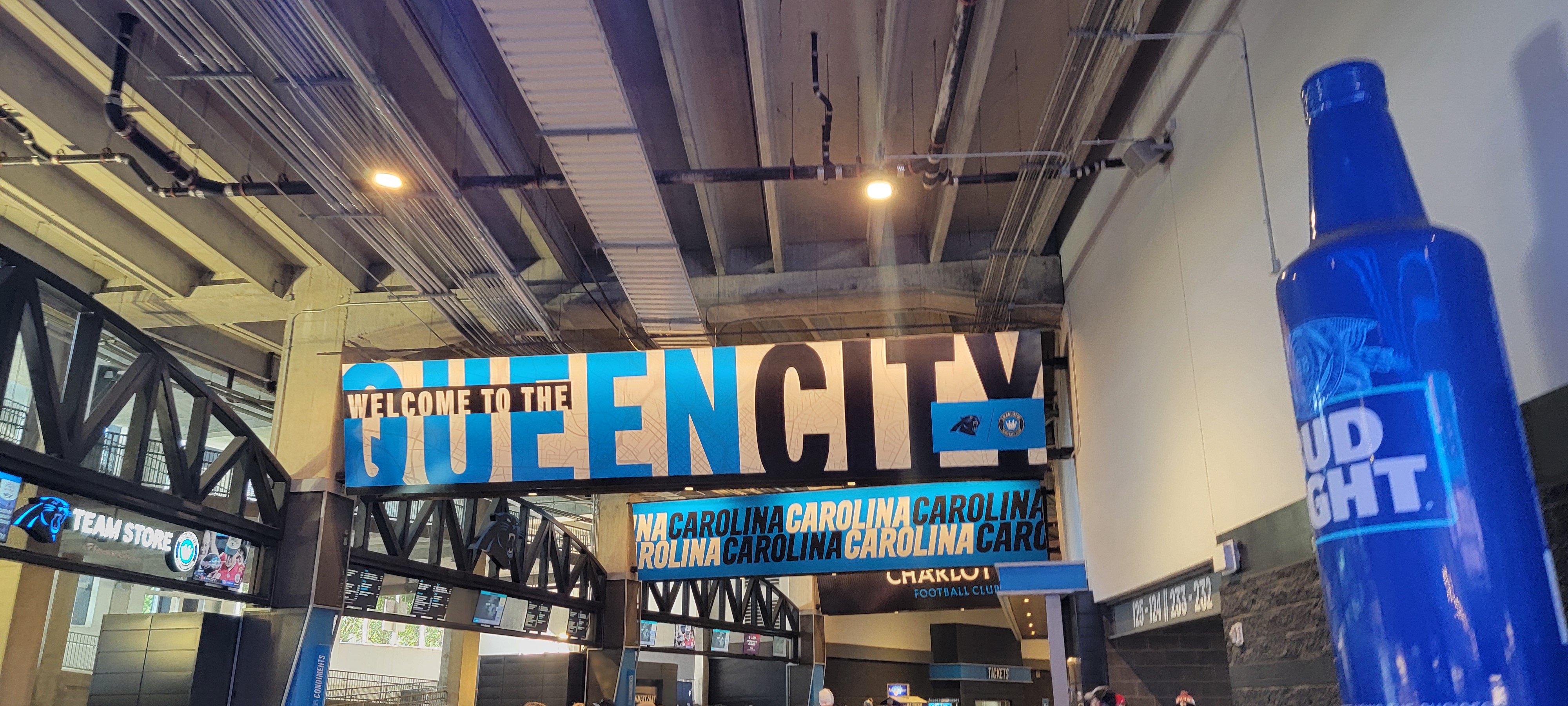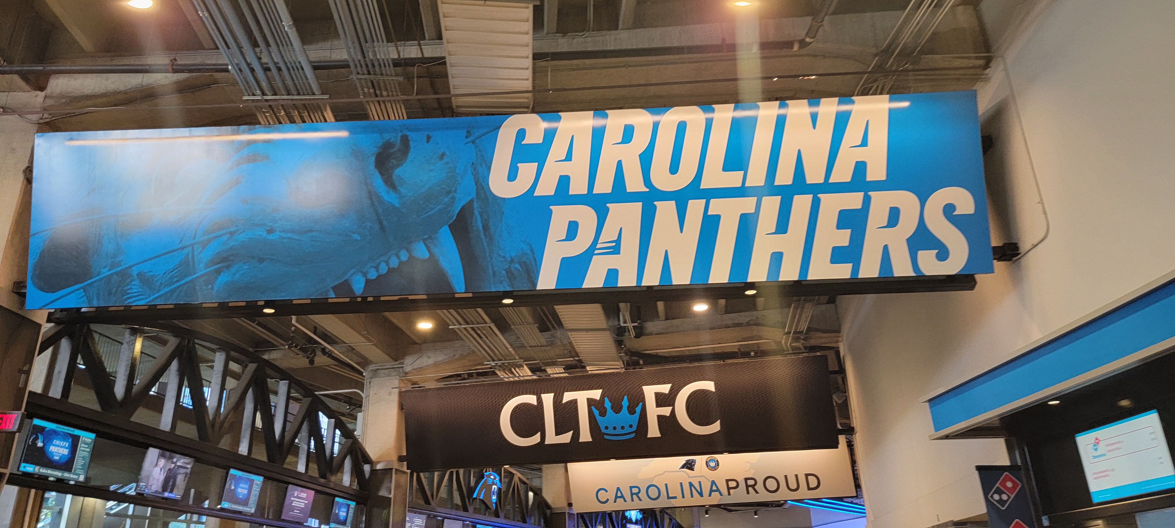 The Panther statues at the entrance were quite the nice touch to entering the stadium. I wanted to get a new Panthers hat so I went to the stadium store and found one. Then it was time to explore the stadium more and, eventually, find some food.