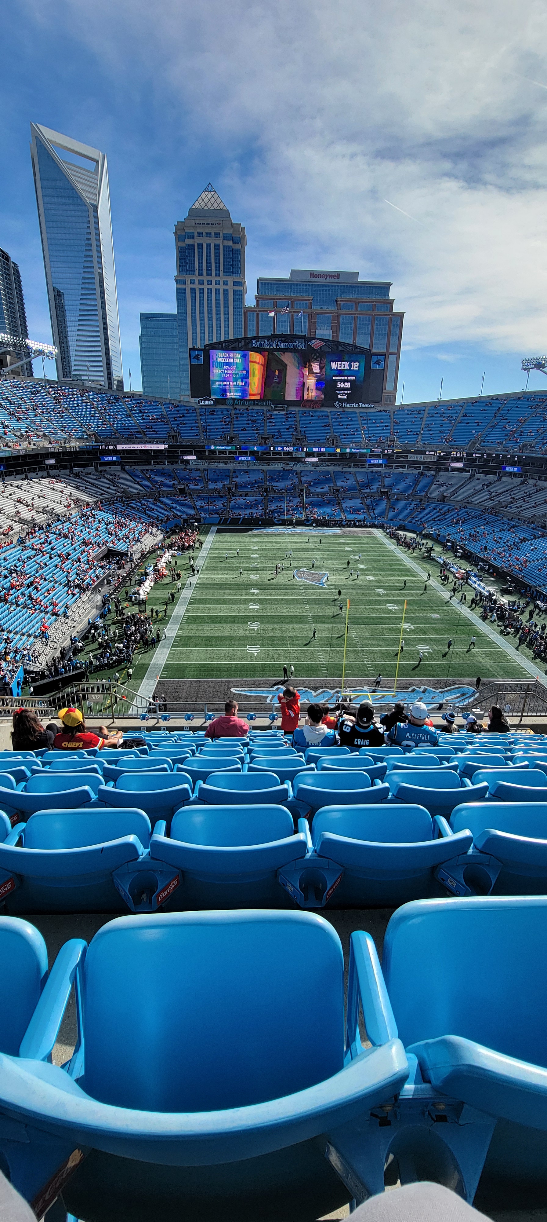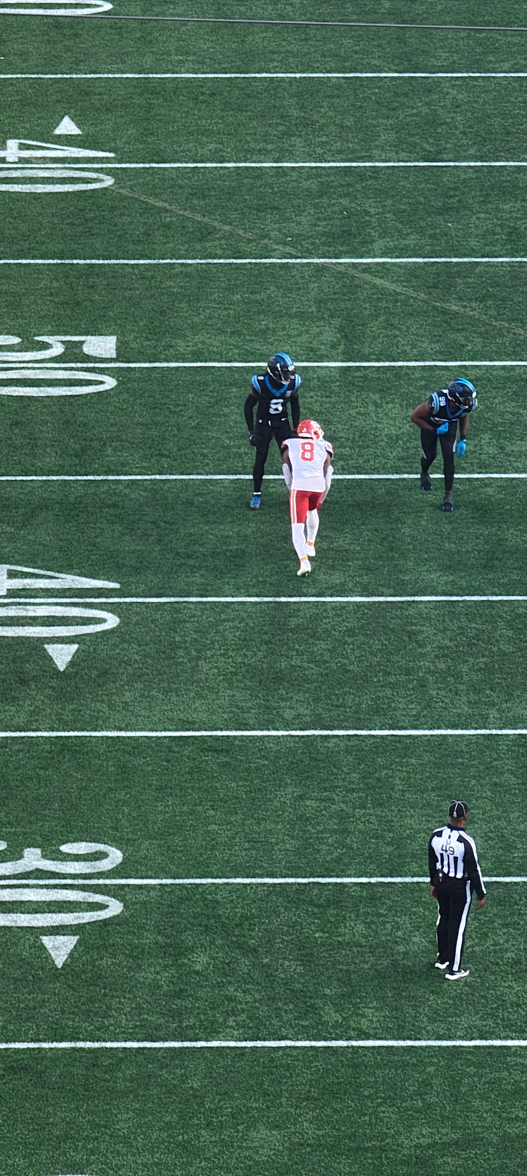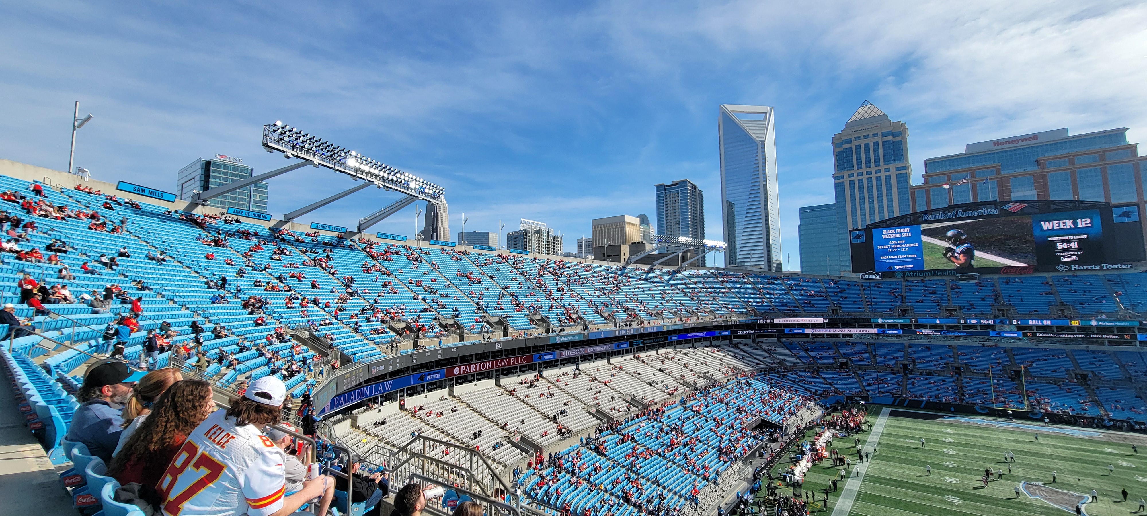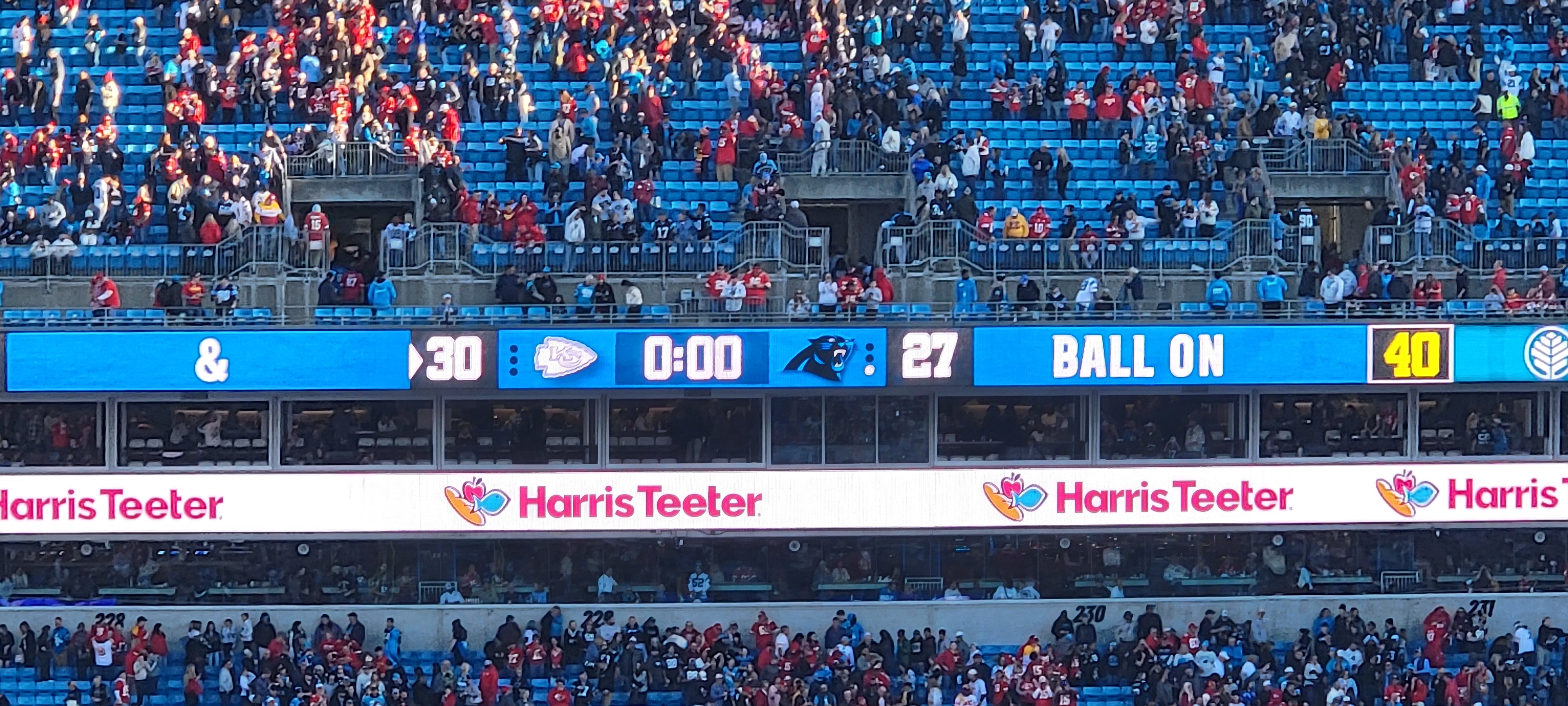 This game was definitely one of the better NFL football games that I have been to. There was scoring on almost every drive. Patrick Mahomes delivered once again and played like the MVP that he has been. Bryce Young is steadily looking better with the new head coach and coaching staff, much better than he did last year during his rookie year. The receiving corps for the Panthers is coming along nicely as well. I was completely OK with the Panthers losing the game since it was such a good game for them.