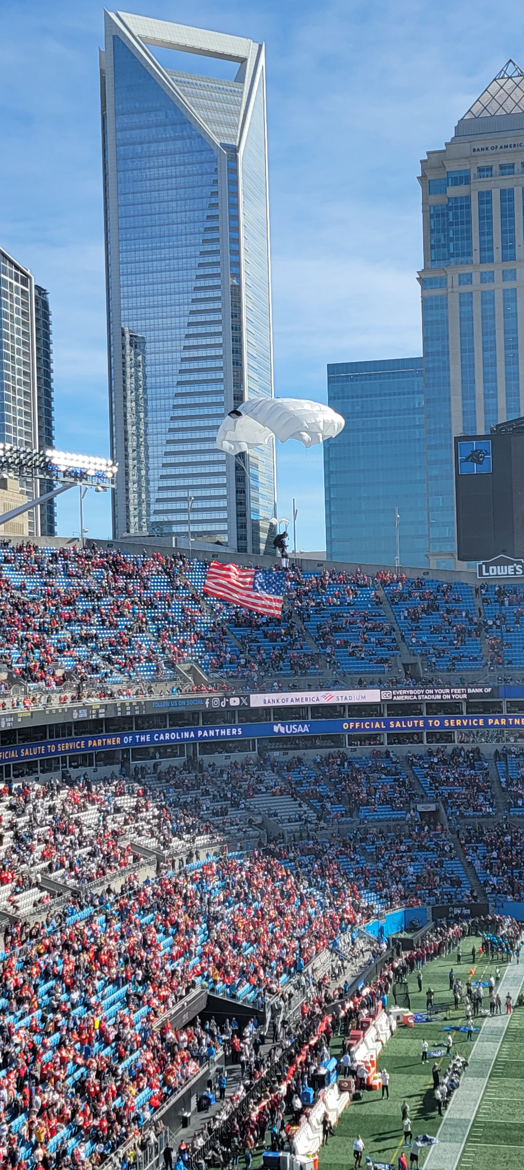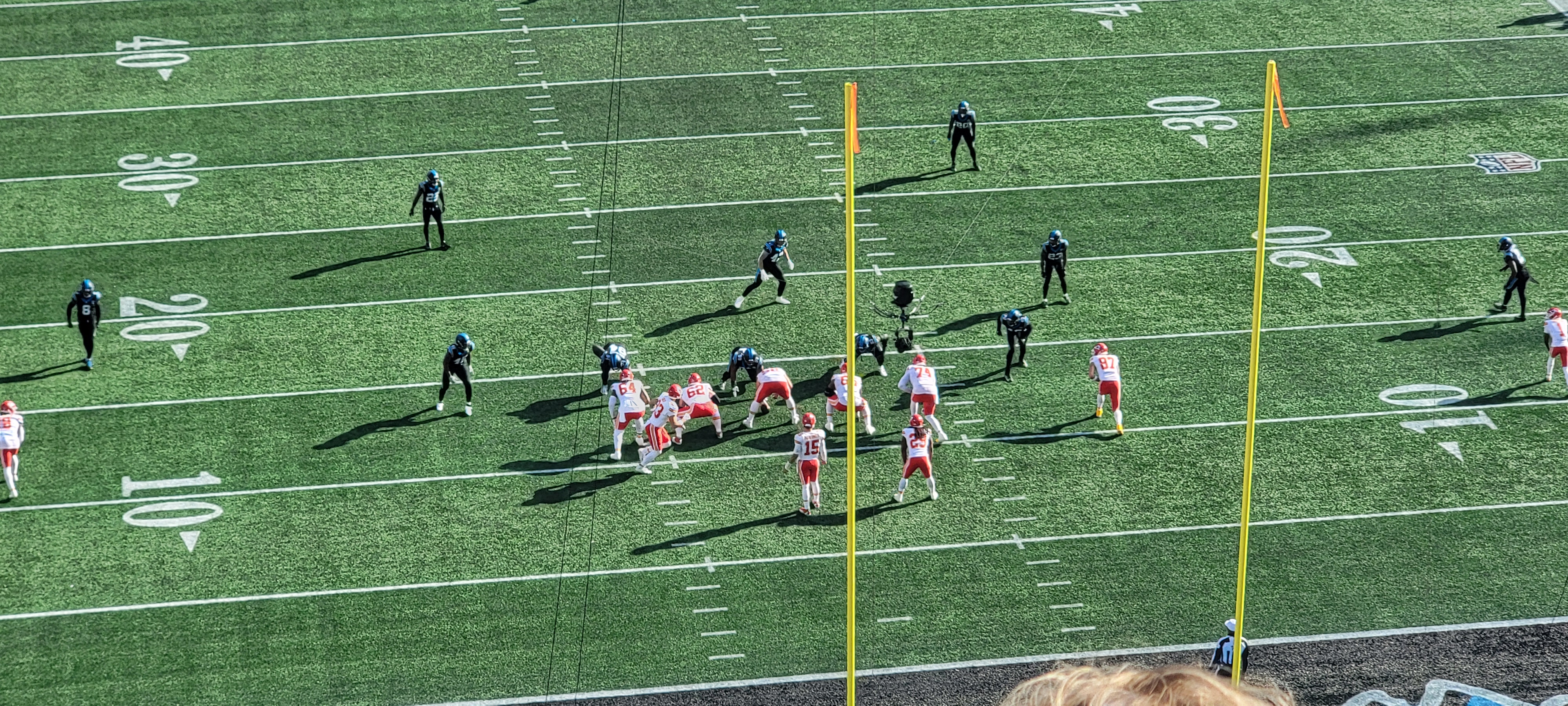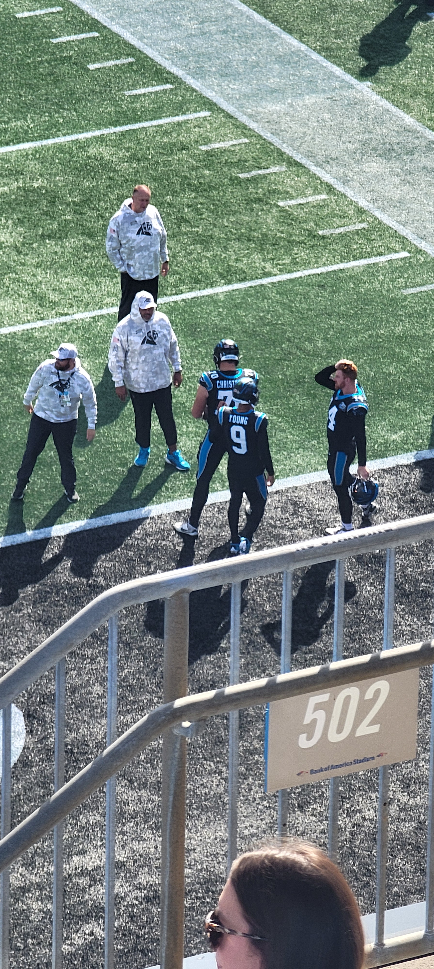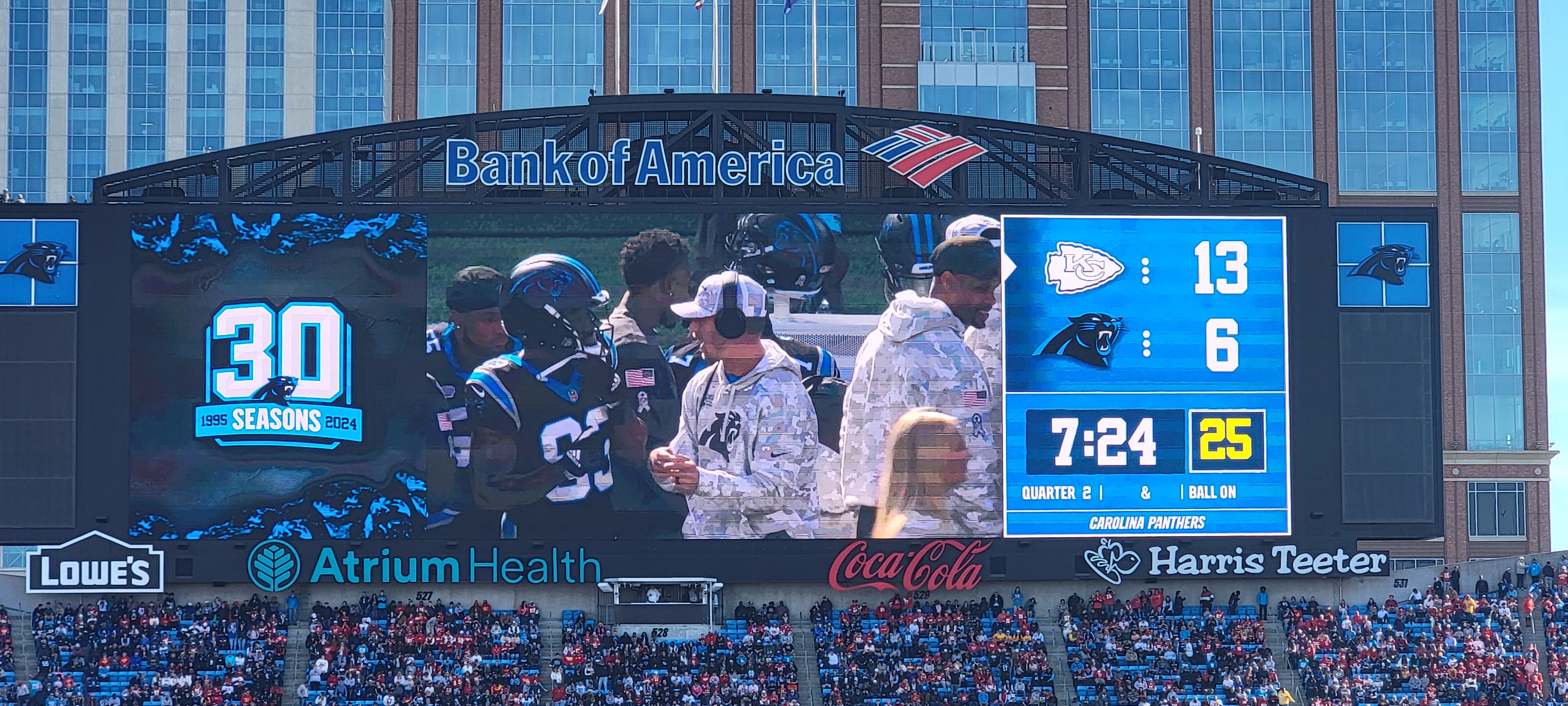This game was definitely one of the better NFL football games that I have been to. There was scoring on almost every drive. Patrick Mahomes delivered once again and played like the MVP that he has been. Bryce Young is steadily looking better with the new head coach and coaching staff, much better than he did last year during his rookie year. The receiving corps for the Panthers is coming along nicely as well. I was completely OK with the Panthers losing the game since it was such a good game for them.